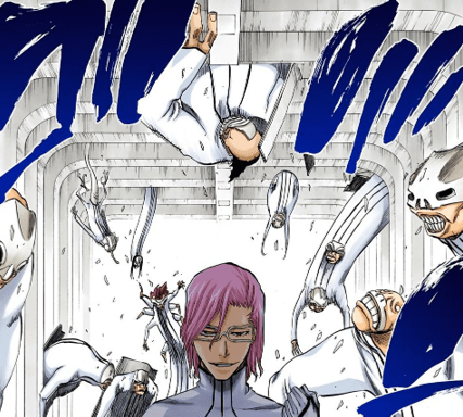 There are also lower ranked Arrancar with number designations in the triple digits who are known as the “Privaron Espada”, prior members who were demoted due to being surpassed by the current members. Even outside of internal demotions, there is also the matter of Nelliel tu Odelschwanck, the former number 3 who left the organization after being crippled by one of its members, and Luppi Antenor, who temporarily replaced Grimmjow as the number 6 when Grimmjow lost his arm, only for Grimmjow to regain the arm and promptly kill him, retaking his spot. Lastly, each of the Espada are responsible for underlings of their own called Fracción, Arrancar who are basically their personal subordinates.
