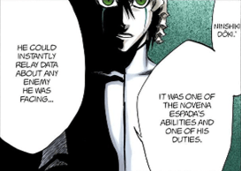 Aside from Zommari and Aaroniero, all of the Espada have showings indicating they should be comparable to Captain-class shinigami, and so scale to most feats from the Captains up until the Arrancar Saga.