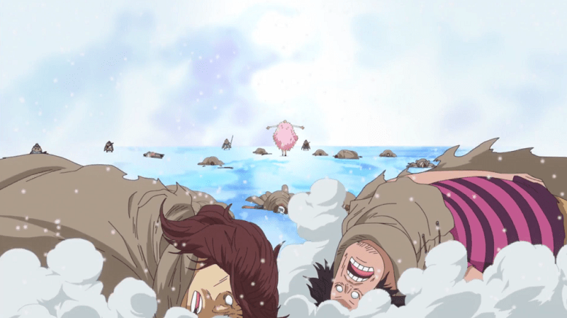 Buggy, Crocodile and Jinbe were all working together throughout the Summit War, having started this temporary partnership in order to escape Impel Down. Even so, they struggled to operate as a true team, and were all mostly fighting on their own throughout the conflict, albeit there were moments such as Jinbe and Buggy working together to save Luffy from Akainu. While this truce was temporary, it’s worth pointing out that long after Marineford, Crocodile and Buggy formed a new alliance alongside Mihawk, the Cross Guild, with Crocodile and Mihawk working as complete equals while Buggy… handles the propaganda.