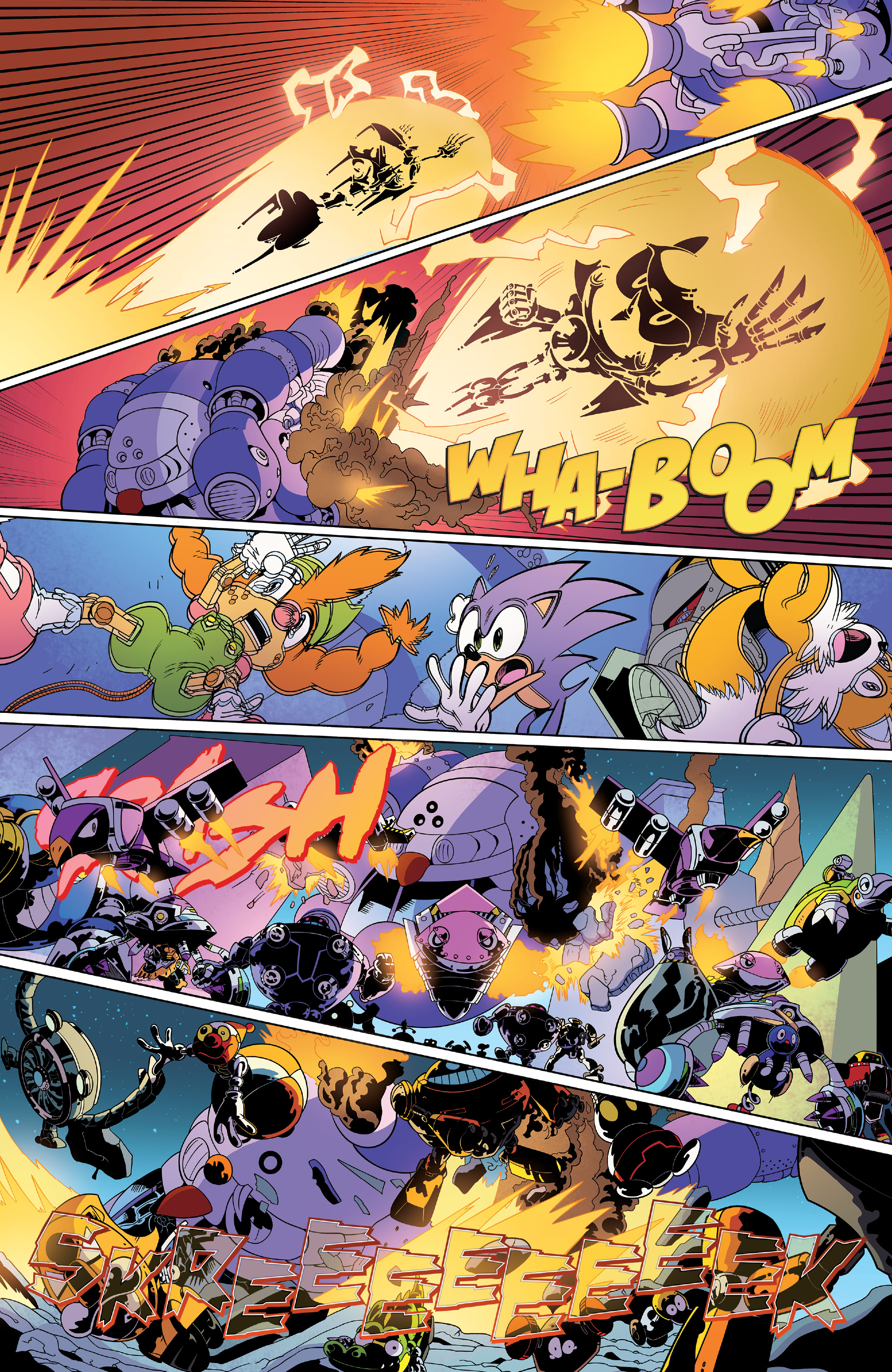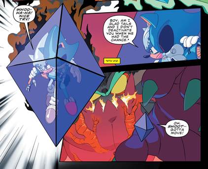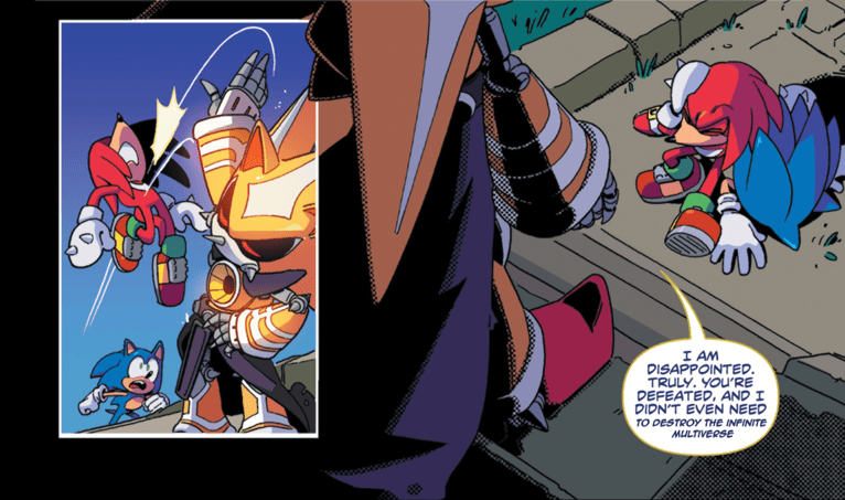 • Master Overlord: Finally, we have Master Overlord. Despite dragging about how it became Metal Sonic’s ultimate form, we believe it isn’t the case. First, we have to remember that Shadow depowered Super Neo Metal Sonic with a Chaos Spear, taking advantage of his specific weakness of Chaos energy sources nullifying each other. This completely takes Metal Sonic off guard, and thus makes him completely reposition his strategy, despite how he bragged about expecting this to happen (hell naw he didn’t). Sonic even drags on Master Overlord not being a Super state anymore, and while this could because he’s not glowing yellow and is now a giant dragon, considering how Metal had to reposition his strategy after Shadow caught him off guard, and how later he gets damaged easily by a lot of base form level characters (even if they were taking advantage of the fact Knuckles was targeting the Master Emerald to be removed), it probably doesn’t make Master Overlord on the same levels of a Super tier. Don’t get the wrong idea, he’s definitely way stronger than your average base form – just look at how many people were needed to take him out, but we believe he’s probably not there with what IDW has given.