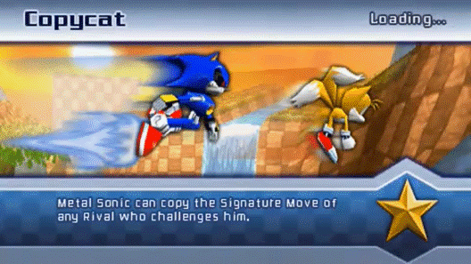 • Emerald Dive: I’M NOT GONNA SUGARCOAT IT Metal Sonic dashes in the air towards his opponent like a torpedo, dealing two hits to them and knocking them down.