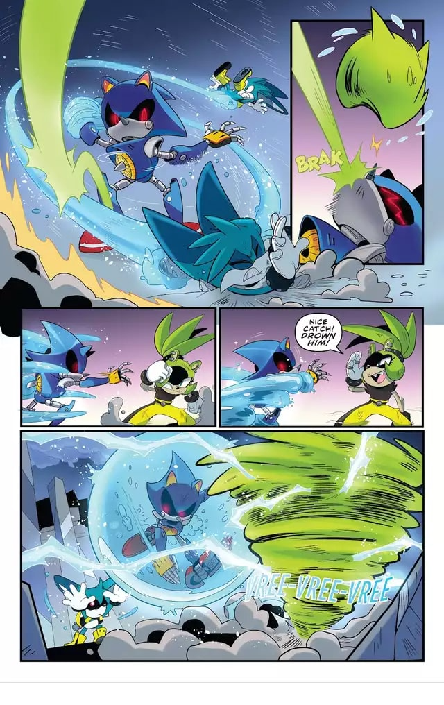 • Super Neo Metal Sonic: I mean…it’s a super form. Case clos-Oh. It’s not that simple? Ok well, let’s be more specific then. For starters…well yes, it is a super form. That’s a pretty good start. There’s also the fact that Neo Metal has Sonic’s biodata, which is the main reason he can go super in the first place. We know this is the case because without Sonic’s biodata, he was incapable of going super with the emeralds in Mania Adventures. Heck, the main reason Tails wanted to keep Burning Blaze, who is equal to Super Sonic, away from Metal Sonic was because he speculated that he would’ve been able to copy her bio data and use the Sol Emeralds for himself. In order to turn into Super Sonic, Sonic taps into the “full” power of the Chaos Emeralds. If copying Blaze’s biodata would’ve led to Metal harnessing the power of the Sol Emeralds and being a problem for Burning Blaze, why wouldn’t the same thing apply to Sonic? Heck, he has Shadow’s biodata too, and Shadow is better at tapping into chaos energy than Sonic is. Last but not least, Sonic Speed Simulator shows us that Super Neo Metal Sonic can put up a fight against Super Sonic. While Roblox is not explicitly canon, Nibroc Sarkaria, who works on the game, has said that SEGA has to approve of the stories they create and will make them rewrite them if they do anything that conflicts with canon. This means that SEGA themselves had to approve of the idea of Super Neo Metal being a Super Sonic boss fight. And like…why wouldn’t they? It’s a super form.